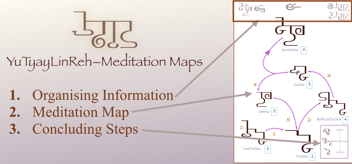 - 1 - YuTyayLinReh with the romanised Rehnadee Shum and a nick name for the step. This type of map is best for those just starting out using meditation maps.